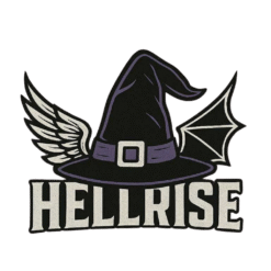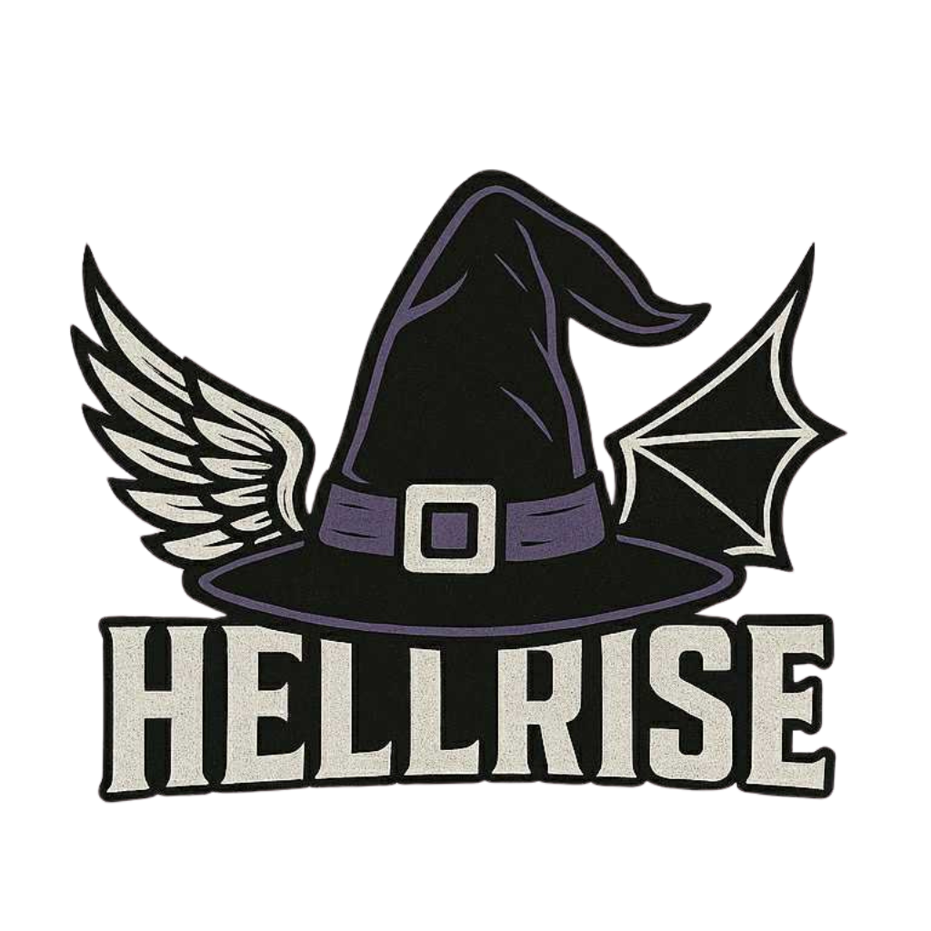 Le logo HELLRISE se coiffe d’un chapeau de sorcière pour un look ensorcelant et audacieux — parfait pour celles et ceux qui conjurent la normalité avec style.