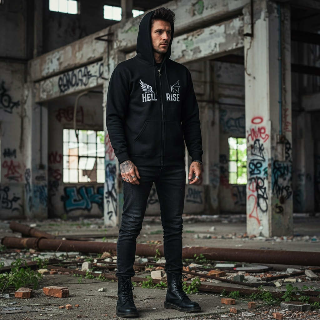 Équilibre la lumière et les ténèbres avec la veste zippée HELLRISE.